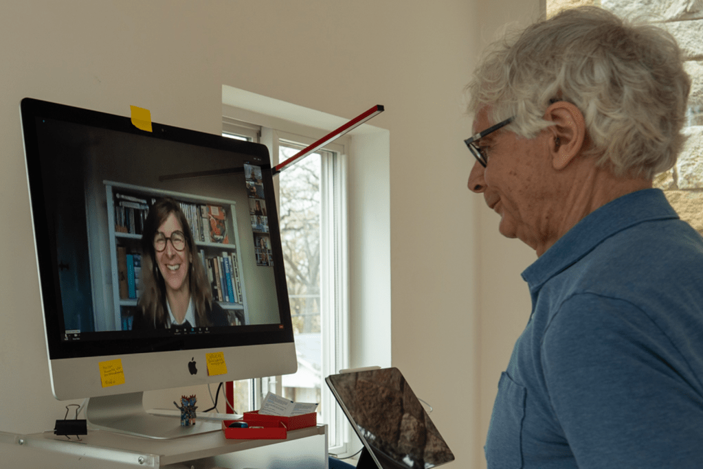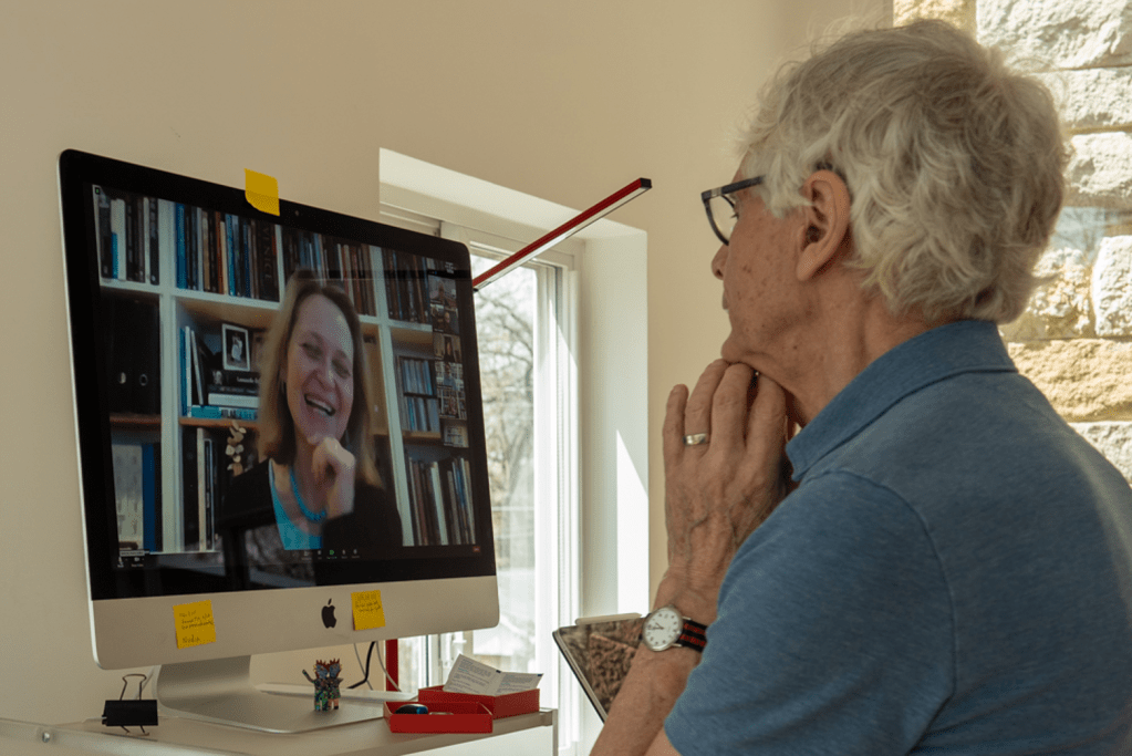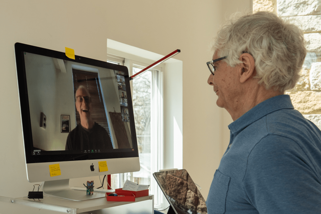 And here are some screen grabs from (a) Dom Lopes’ talk (b) Mark attending the lecture and (c) Mark sneaking in a catch up with colleagues.